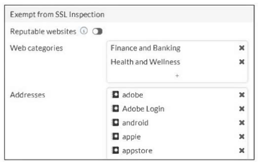 The predefined deep-inspection and custom-deep-inspection profiles exclude some web categories from SSL inspection, as shown in the exhibit.