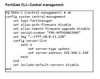 - AFortiGate must enable rating for the FortiManager IP address, 192.168.1.120, in server list 1.