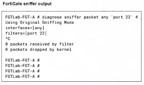 Ports 80 and 22 are open on the Linux server, and on FortiGate a VIP and firewall policy are configured to allow traffic through ports 80 and 22. Traffic on port 80 is successful, but traffic on port 22 is not detected by FortiGate.