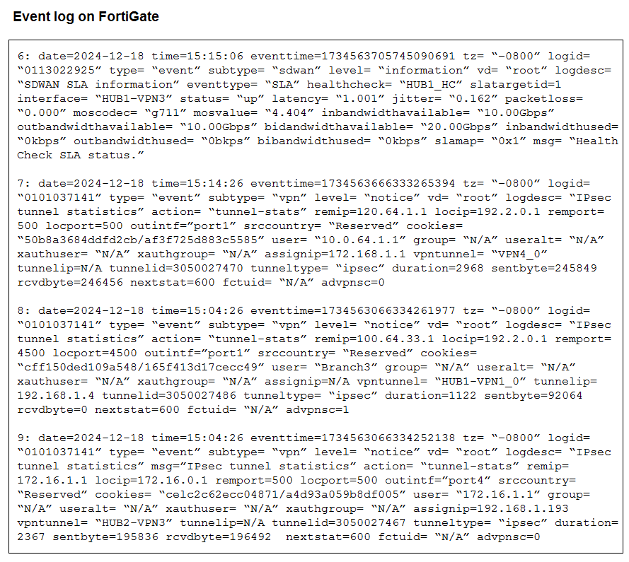 Refer to the exhibit that shows event logs on FortiGate.