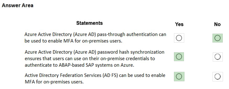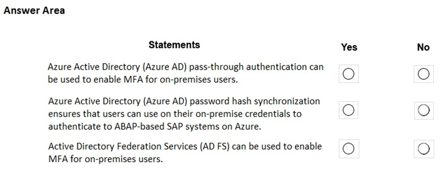 You plan to extend the on-premises authentication features to Azure and to migrate the SAP applications to Azure.