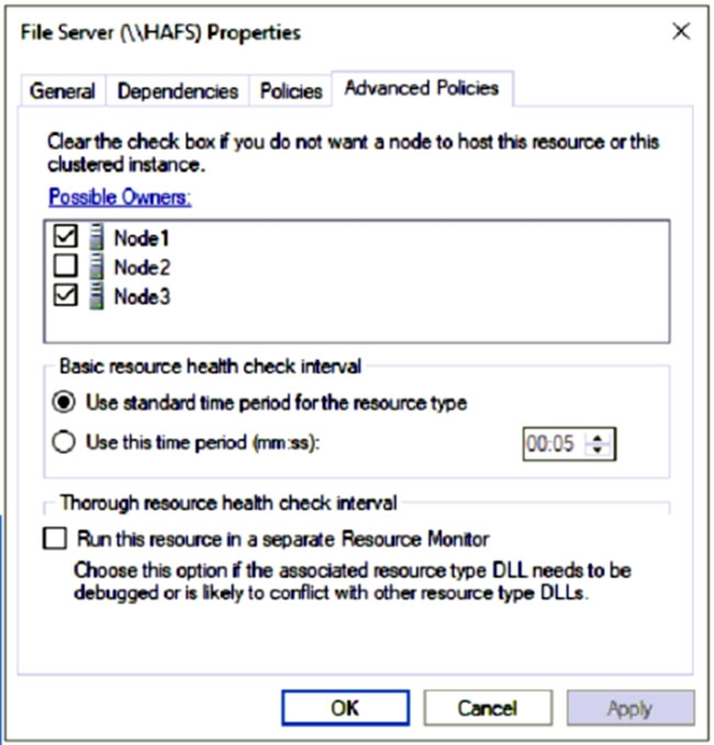 The Advanced Policies settings for HAFS are configured as shown in the Advanced Policies exhibit. (Click the Advanced Policies tab.)