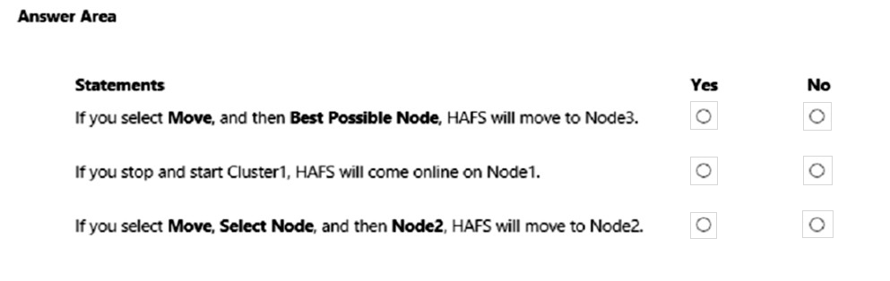 HAFS will move from Node1 to Node3 if we test failover for the cluster.