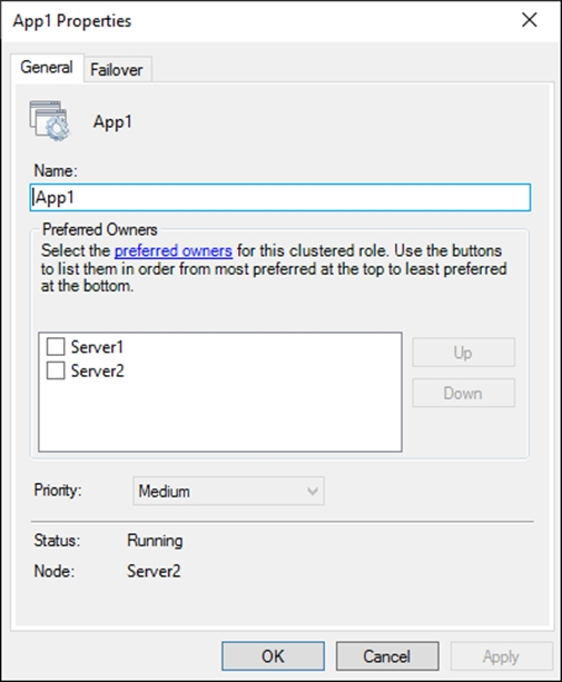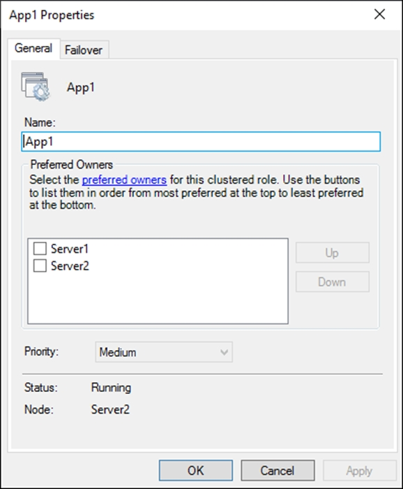 Solution: From the General settings, you increase the priority of Server2 in the Preferred Owners list.