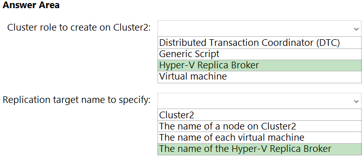 You plan to use Hyper-V Replica to replicate the virtual machines from Cluster1 to Cluster2.