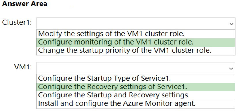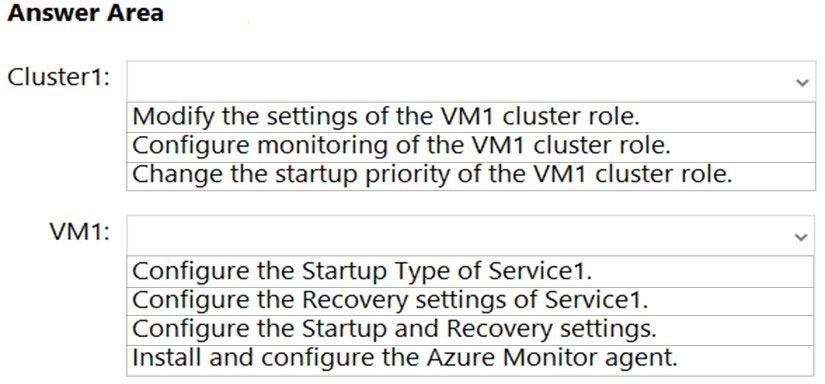 You need to fail over VM1 automatically to a different node when a service named Service1 on VM1 fails.