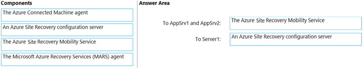 You plan to use Azure Site Recovery to replicate AppSrv1 and AppSrv2 to Azure.