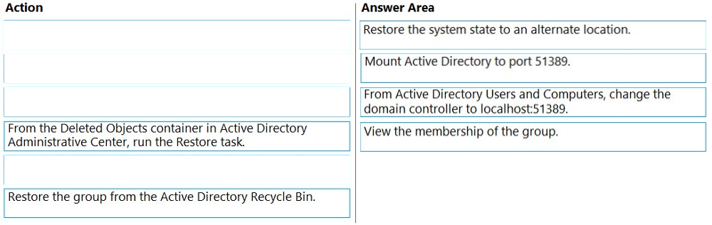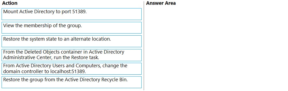 Your network contains an Active Directory Domain Services (AD DS) domain that has the Active Directory Recycle Bin enabled. All domain controllers are backed up daily.
