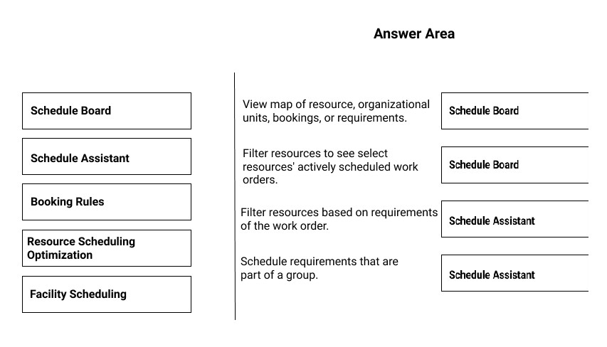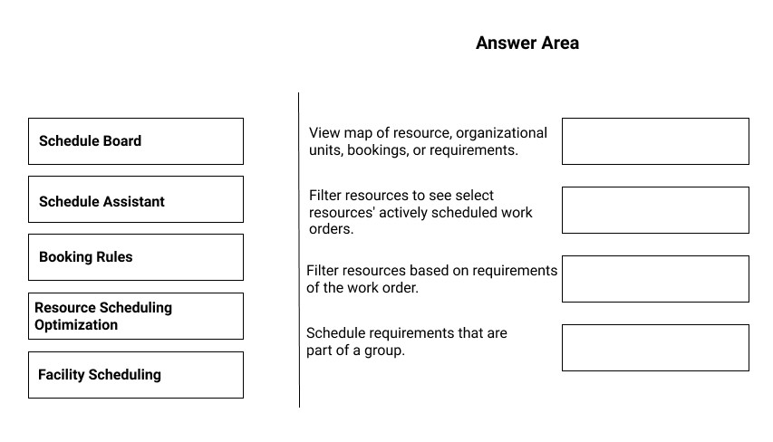 Which resource scheduling component should be used for each task? To answer, drag the appropriate resource scheduling component to the appropriate task.