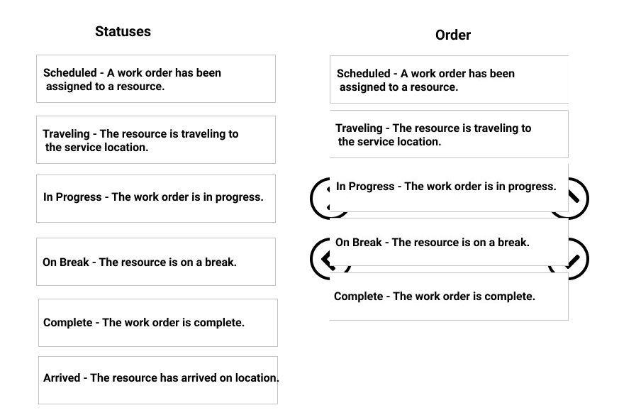 - CConfigure the status color for a booking status record, to identify high priority work order records.