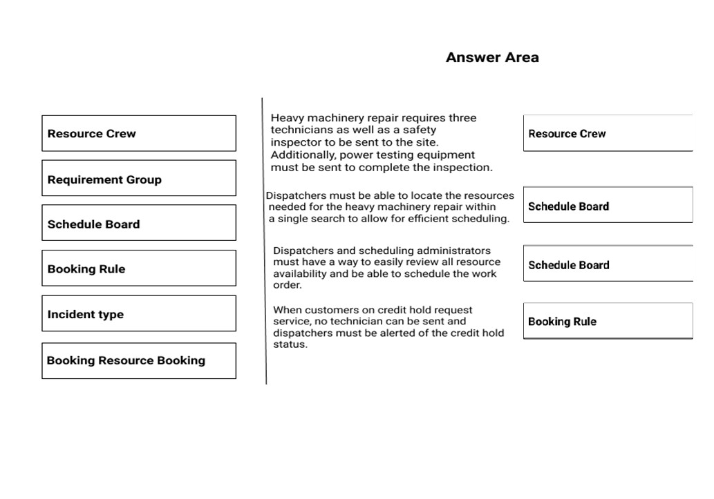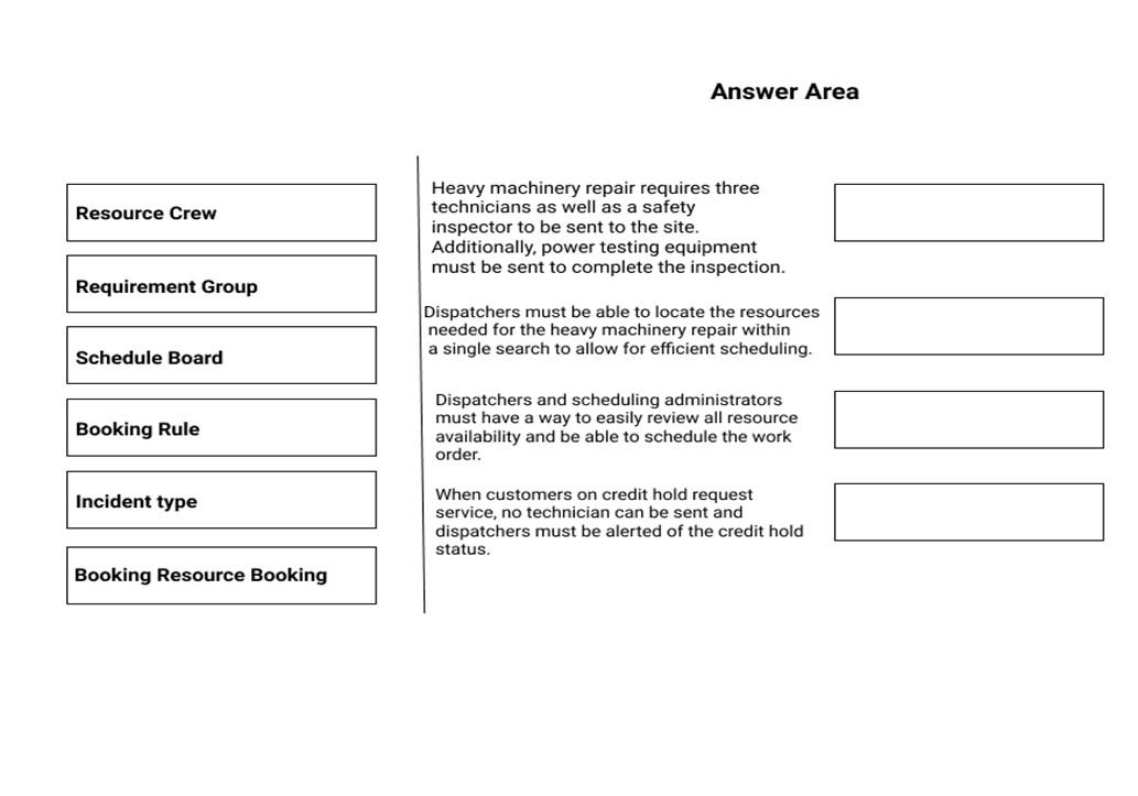 Each resource scheduling component may be used once, more than once, or not at all. You may need to drag the split bar between panes or scroll to view the content.