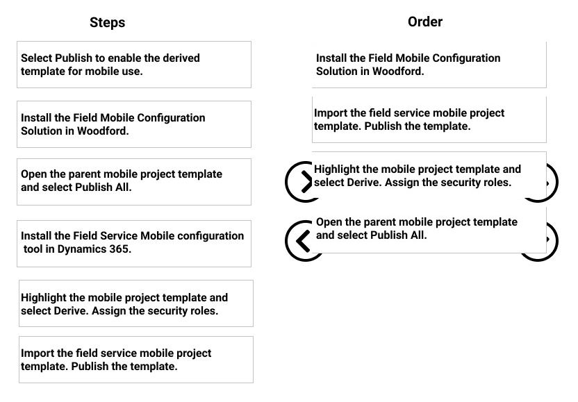 What are the four steps you need to perform, in sequence, to ensure the mobile solution is ready for configuration and deployment? To answer, move the appropriate actions from the list of actions to the answer area and arrange them in the correct order.