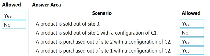 A company uses Dynamics 365 Supply Chain Management for purchasing and sales operations across three different sites.