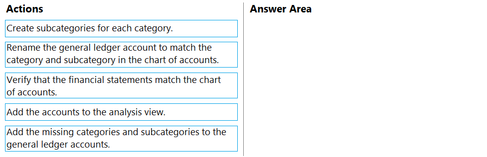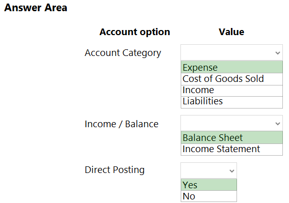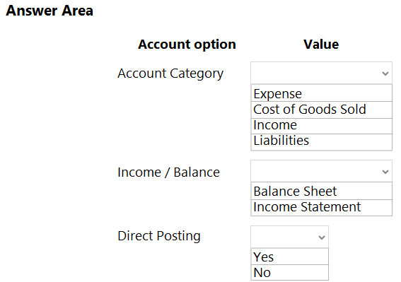 You are implementing Dynamics 365 Business Central. The accounting manager of the company provides you with the chart of accounts.