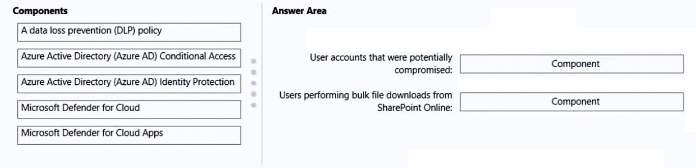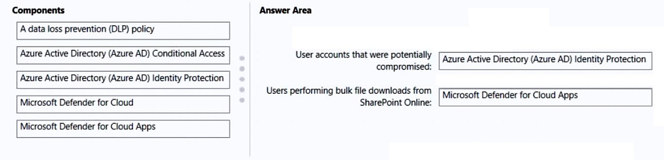 https://docs.microsoft.com/en-us/azure/active-directory/identity-protection/concept-identity-protection-risks https://docs.microsoft.com/en-us/defender-cloud-apps/policies-threat-protection#detect-mass-download-data-exfiltration https://docs.microsoft.com/en-us/microsoft-365/security/defender/investigate-users